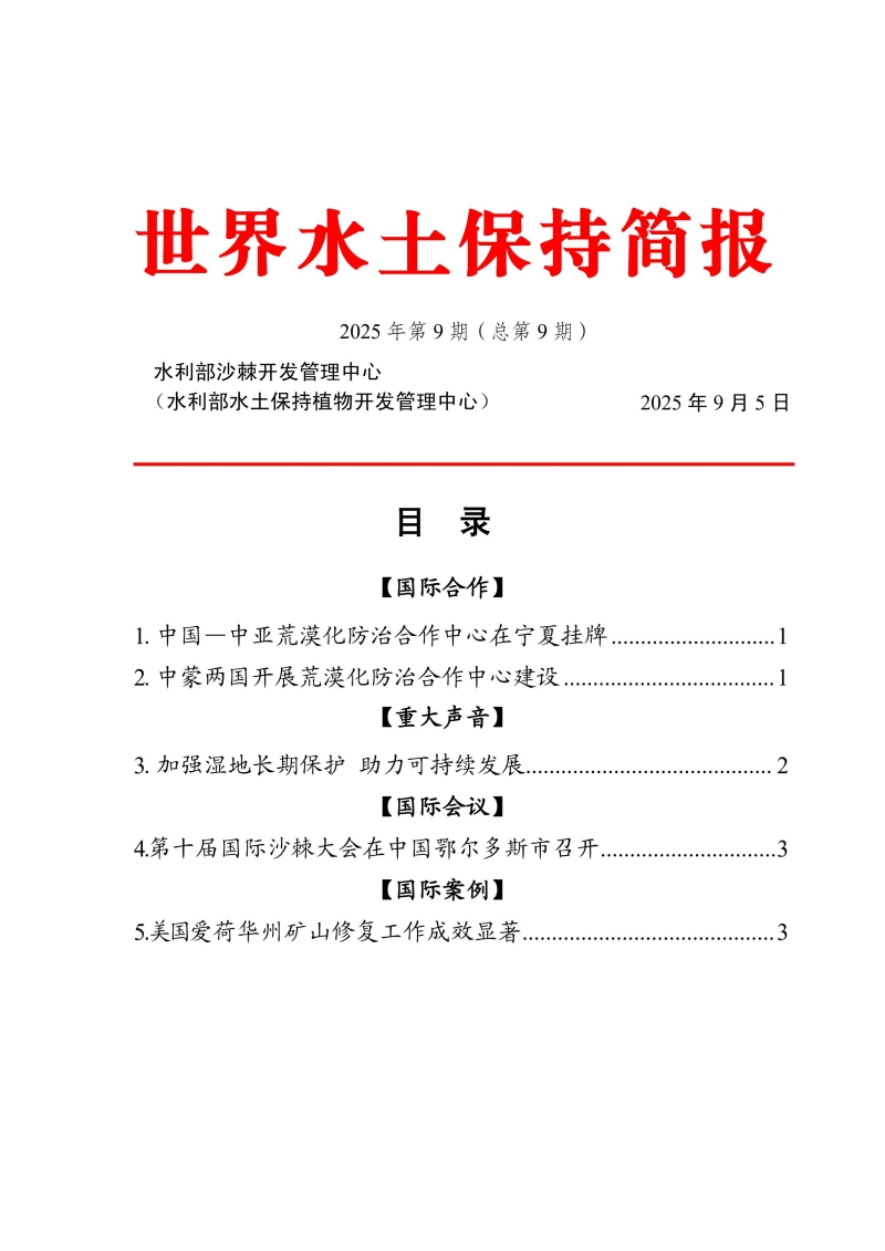 世界水土保持简报(2025年第9期)